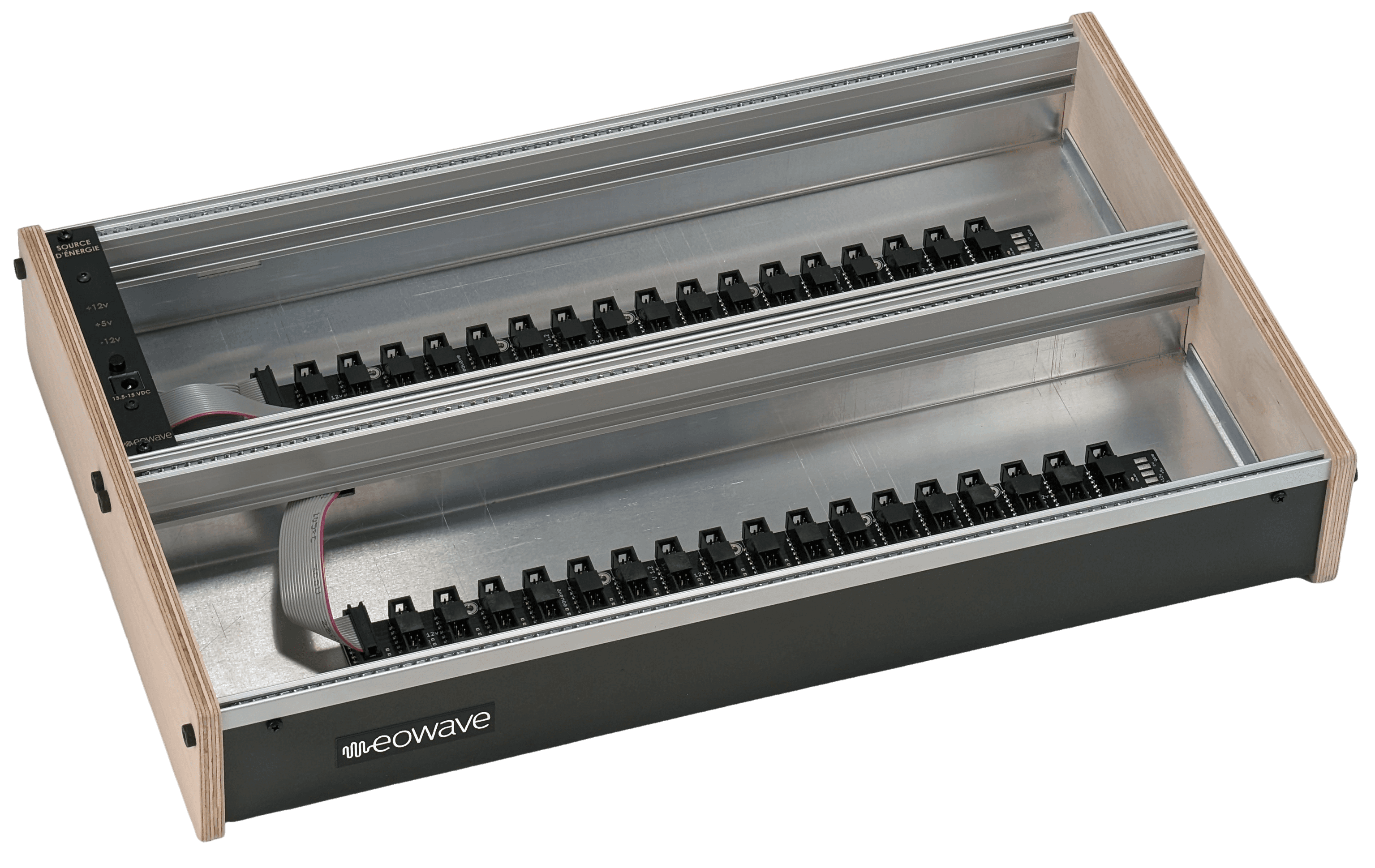 Integrated power supply: The Eowave 6U Studio 104HP integrates "source d'énergie mk3" power supply, capable of providing stable and reliable power to your modular system. It has the power capacity of 2.5A+12V / 2.5A -12V / 2A 5V . The power supply block is also delivered with the case.